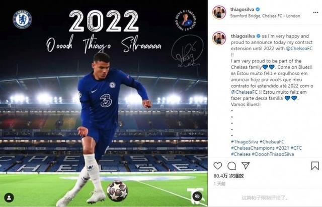 直播车讯北京时间6月6日,此前切尔西官宣与蒂亚戈-席尔瓦续约一年,今天蒂亚戈-席尔瓦在ins上发推表达喜悦之情。