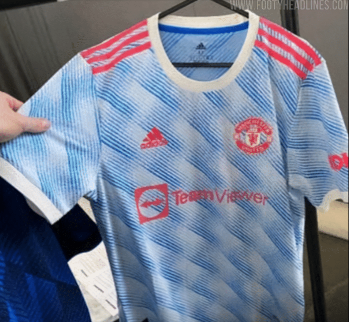 而新赛季的客场战袍,则是灵感来自1991年至1993年复古球衣的白色和蓝色款式,带有几何蓝色图案。最初的谍照显示,它可能使用三叶草,但最终阿迪达斯还是换成了现代化的三道杠标志。新客场球衣的短裤将是白色,预计曼联的新球衣将从7月开始公开发售。
