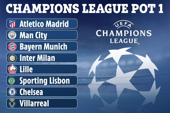 欧足联的欧冠比赛章程规定,欧冠、欧联杯冠军,以及排名前6位的欧洲联赛冠军队伍,将成为欧冠的8个种子队。这意味着欧冠冠军切尔西、欧联杯盟主比利亚雷亚尔、英超冠军曼城、西甲冠军马竞、意甲冠军国际米兰、德甲冠军拜仁慕尼黑、法甲冠军里尔和葡超冠军葡萄牙体育,已经锁定第一档球队名额。