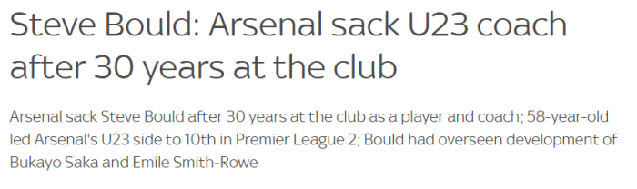 直播车讯 本赛季58岁的博尔德担任阿森纳U23主帅,率队获得联赛第10名,一队的萨卡和史密斯-罗都是他的弟子。