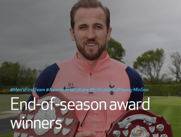 直播车讯 5月23日热刺官方消息,凯恩当选本赛季队内最佳球员,拉梅拉对阿森纳的进球获得热刺赛季最佳进球。