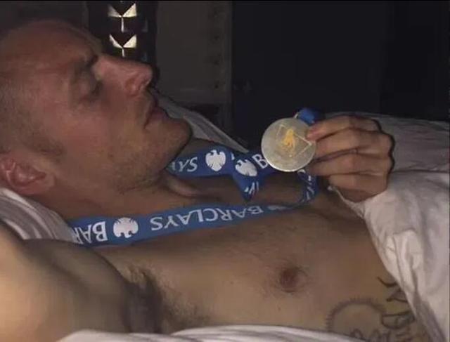 他真的这样睡着了,就像当初戴着英超奖牌那样。