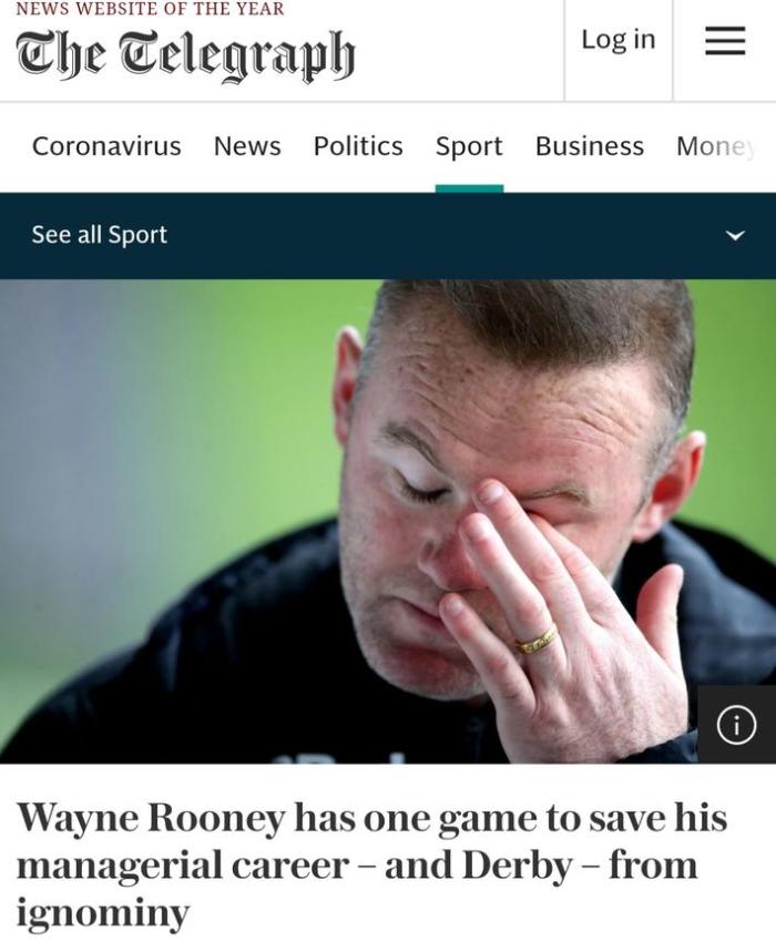 自鲁尼一月份正式转正后,德比郡战绩不佳,球队目前遭遇6连败,近14场比赛更是只收获了一场胜利。英冠联赛进行到最后一轮,德比郡以43分排名第21,只高出降级区2分(罗瑟汉姆41分排第22,但双杀了德比郡)。本周末,德比郡将在主场迎战谢周三,如果降级,将是球队自1984年来第一次降入第三级别联赛。此外,降级将意味着德比郡在转播费和商业收入上至少损失1000万镑。