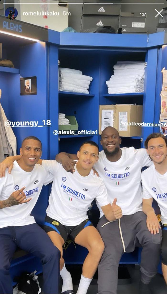 而穆帅求购曼联旧将,或许也是参考了其老东家国米的做法。在蓝黑军团提前夺冠后,有一张照片令人关注,卢卡库、桑切斯、达米安和阿什利·扬身披胸前印有「意甲冠军」字样的T恤,在更衣室合影,他们有个共同的身份——前曼联球员!
