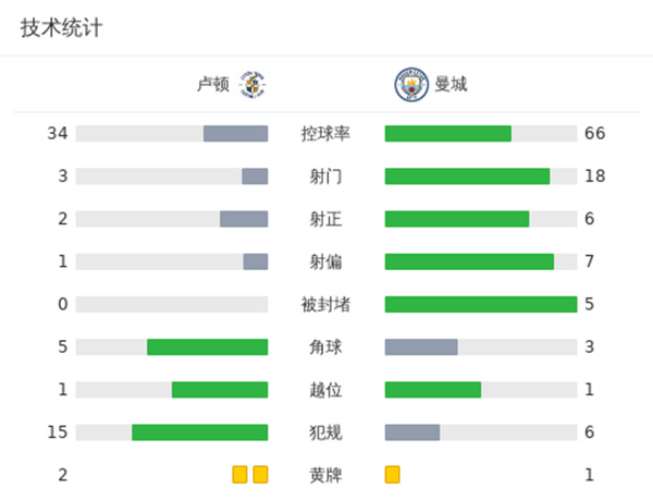曼城2-1卢顿 曼城仍居第4距榜首4分