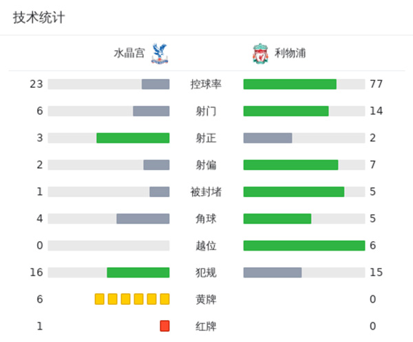 第55分钟,水晶宫获得点球!莱尔马左路下底横传门前宽萨将球解围,随后裁判经过var提示宽萨解围时踢倒马特塔判罚点球,马特塔主罚点球破门,水晶宫1-0利物浦。