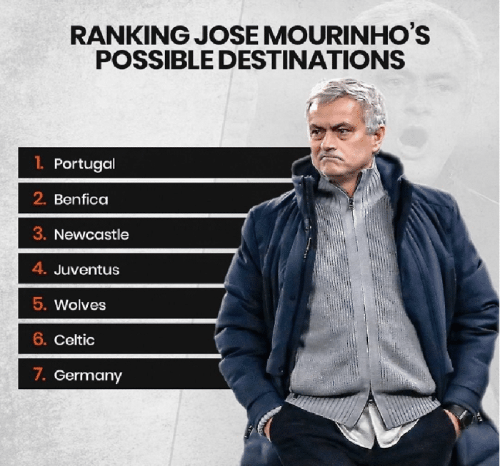 说起穆里尼奥的下家,近日英格兰媒体给出了穆里尼奥最可能加入的七支球队,分别是葡萄牙国家队、本菲卡、纽卡斯尔、尤文、狼队、凯尔特人和德国国家队。当然,这个只是媒体的预测,而且这些球队都希望换帅,其中纽卡重点说一下,不少媒体报道,有美国财团要收购纽卡了,如果是个有雄心的老板,他们可能会加大投入邀请穆里尼奥来重建。