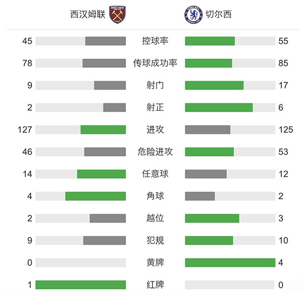 全场比赛结束,最终切尔西1:0战胜西汉姆联!联赛排名第四。