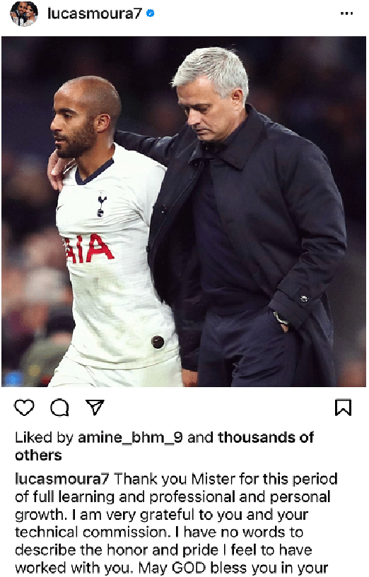 穆里尼奥离开之后,许多热刺球员都在社交媒体上祝福了穆里尼奥: