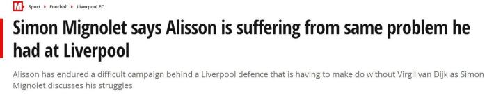 米尼奥莱: 失去范迪克使阿利松陷入困境