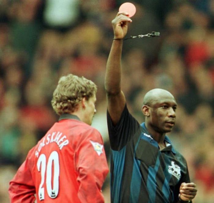当时,索尔斯克亚回追罗伯特·李,在禁区前发现追不上,果断铲倒对手,用红牌换取对方无法单刀破门。