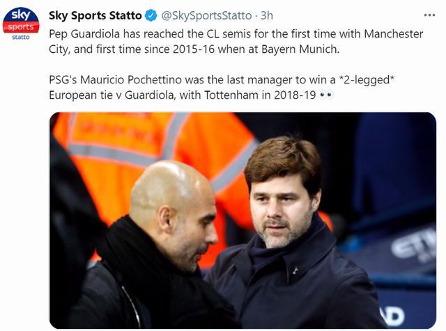 另外,上一位在欧冠两回合淘汰赛中击败瓜迪奥拉的主教练正是波切蒂诺,波帅在2018-19赛季率领热刺在1/4决赛中1-0和3-4曼城,进入四强。