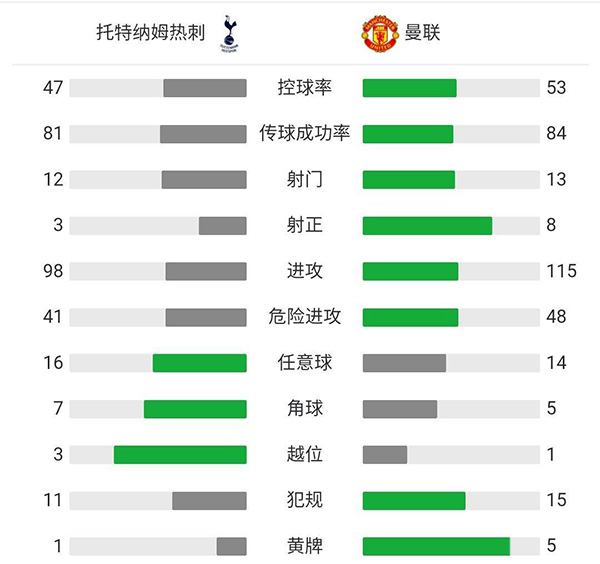 全场比赛结束,曼联3-1逆转战胜热刺,在少赛一场的情况下落后领头羊曼城11分,稳坐积分榜次席。而热刺输球后离前四有6分差距。