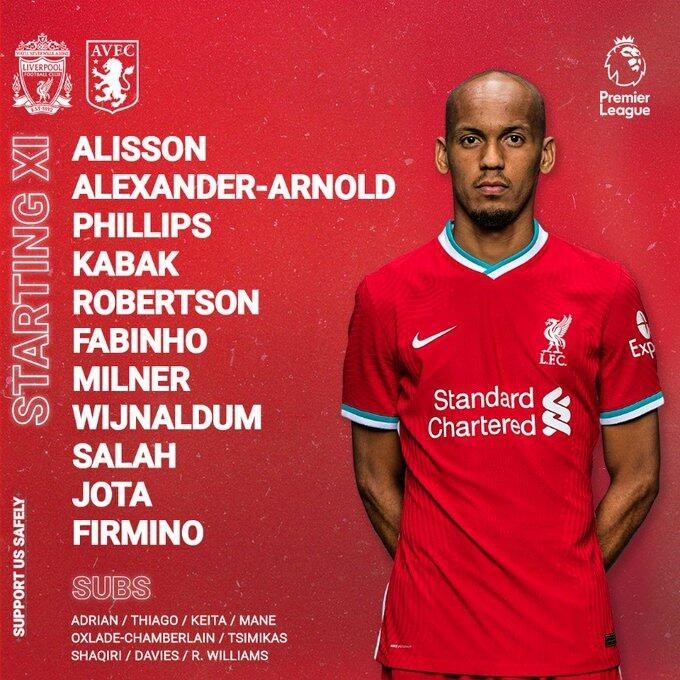利物浦vs阿斯顿维拉首发:菲尔米诺搭档若塔 马内替补