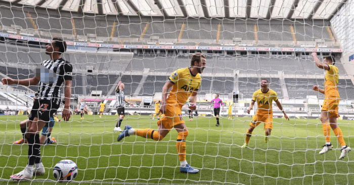 本场比赛,凯恩4分钟内上演了梅开二度的好戏,而他的联赛进球数也达到了19球,而本场比赛开始之前,凯恩联赛进球数是17个,比利物浦的萨拉赫少了1球。但是本场比赛结束之后,凯恩超越了萨拉赫,独享英超射手榜榜首的位置。而且,更有趣的是,凯恩目前依然以13次助攻,位居英超助攻榜榜首的位置,他领先第二的德布劳内2次助攻,凯恩有望成为第一个在英超赛场上同时加冕金靴和助攻王的球员。