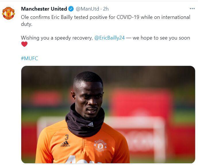 索尔斯克亚证实拜利在国际比赛日期间感染新冠,俱乐部祝福这位科特迪瓦国脚尽快康复。