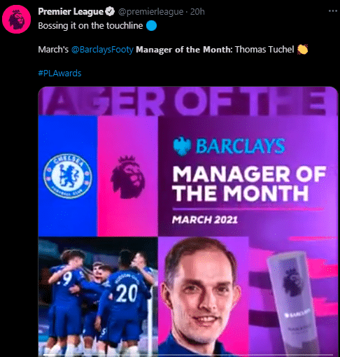 官方: 图赫尔当选英超三月最佳教练
