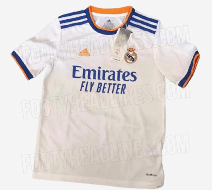 直播车3月15日讯著名足球装备网站FootyHeadlines日前披露了皇马新赛季的主场球衣谍照,这套球衣采用白蓝橙色的搭配,获得了不少好评。