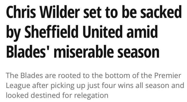 来源:直播车03-12 20:03直播车讯 北京时间3月12日,来自英国权威媒体《泰晤士报》的消息,英超“副班长”谢菲联已经决定解雇球队的主帅克里斯-怀尔德,预计在今天就对外官方宣布。这位53岁的英格兰土帅,也即将成为继比利奇(西布朗)和兰帕德(切尔西)之后,本赛季英超第三位中途下课的主帅。