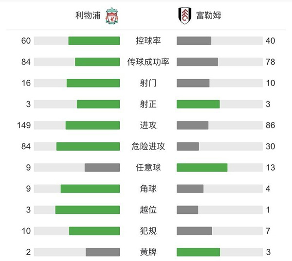 全场比赛结束,米利物浦0-1不敌富勒姆,遭遇主场六连败。