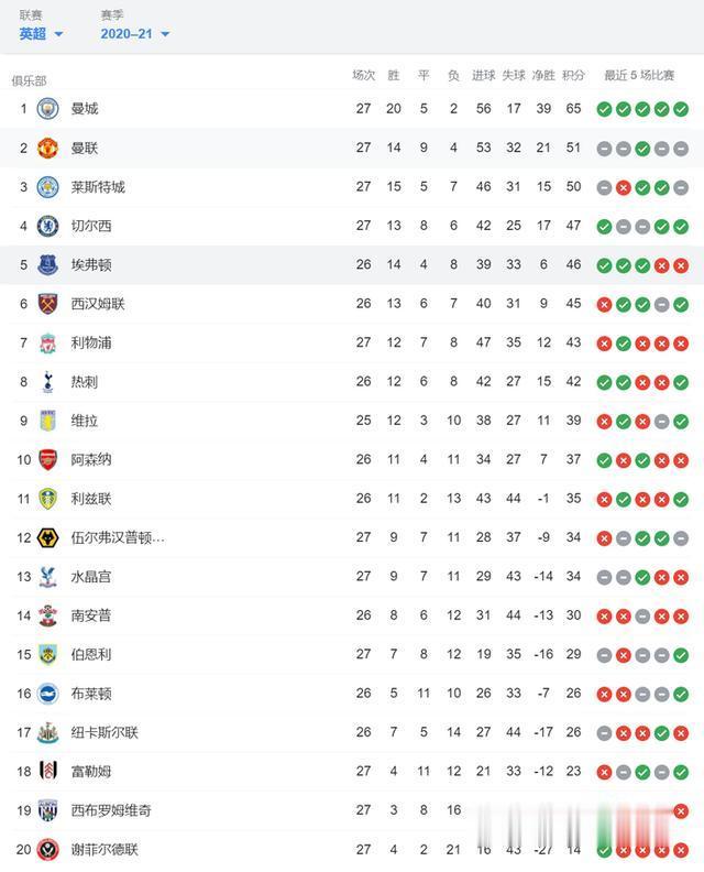 直播车3月5日讯 英超又一个比赛日落下帷幕,曼城目前27轮65分大幅领跑。