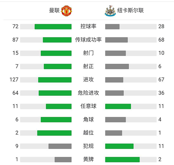 第73分钟,曼联获得点球,马蒂奇左路横传,拉什福德拿球被威洛克踩倒,裁判判罚点球,B费主罚骗过达尔洛轻松命中,曼联3-1纽卡斯尔。