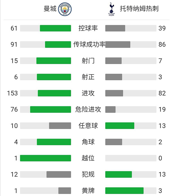 曼城3-0热刺 京多安梅开二度后伤退罗德里点射