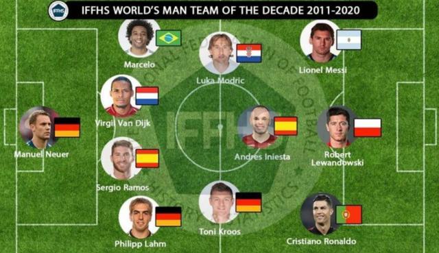 IFFHS评过去十年世界最佳阵:梅西、C罗领衔