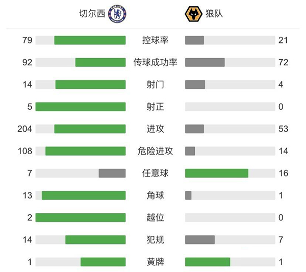 全场比赛结束,切尔西主场0-0闷平狼队。