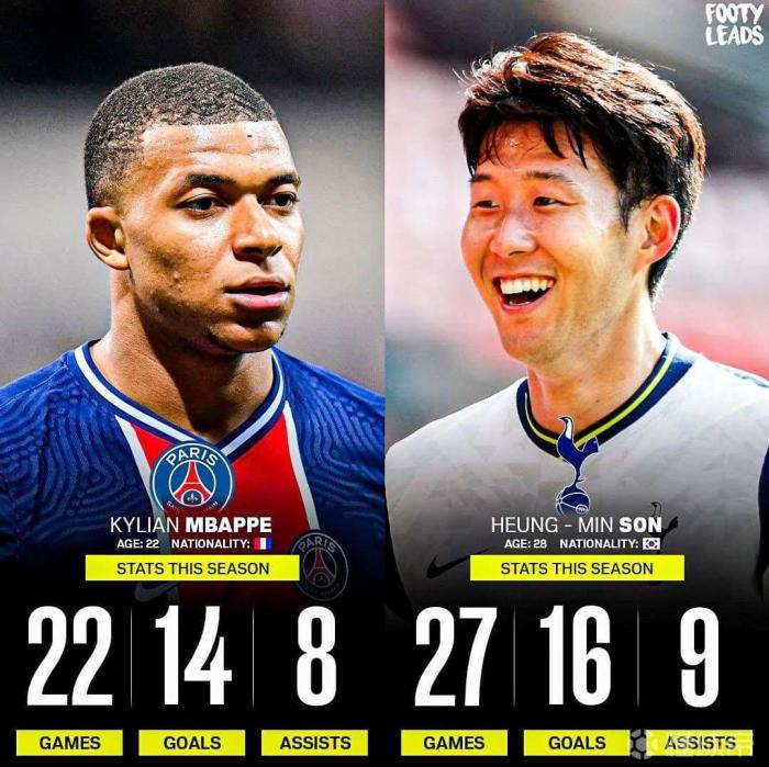 英媒对比孙兴慜和姆巴佩数据,两人谁更出色?