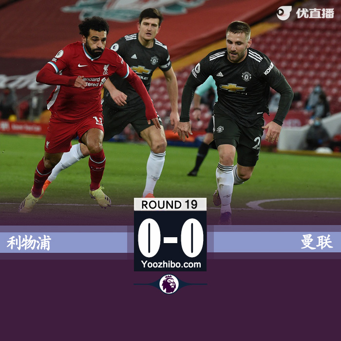 最终全场比赛结束,曼联在客场以0-0的比分战平利物浦,继续领跑英超。