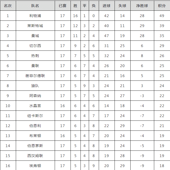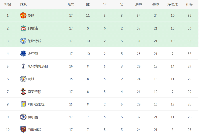 当然,除了英超各大强队表现不好,英超其他中游球队也开始崛起了,而本赛季莱斯特城、埃弗顿、南安普顿甚至是维拉的表现都非常抢眼,他们都有争冠的希望。目前,莱斯特城、埃弗顿距离榜首都不过4分的差距,南安普顿距离榜首也不过7分的差距,而维拉虽然距离曼联有10分的差距,但是他们少踢两场比赛。他们如果在下半赛季可以延续这样的表现,他们也都有争冠的可能性。