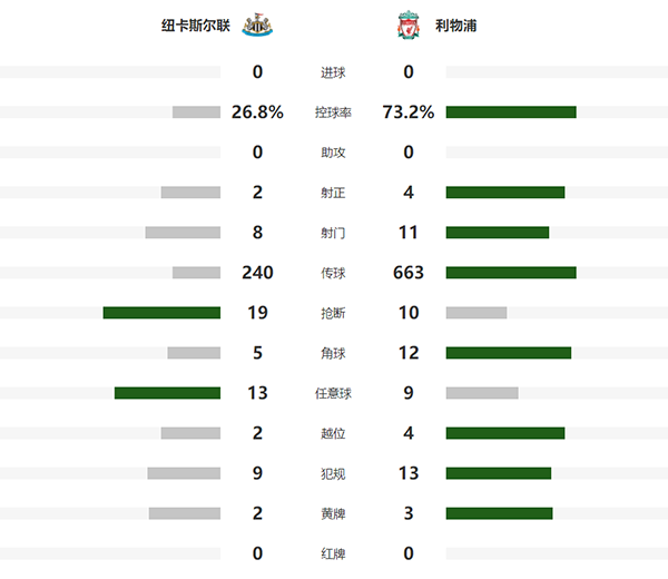 英超简报:利物浦0-0纽卡斯尔 萨拉赫失单刀达尔洛献神扑
