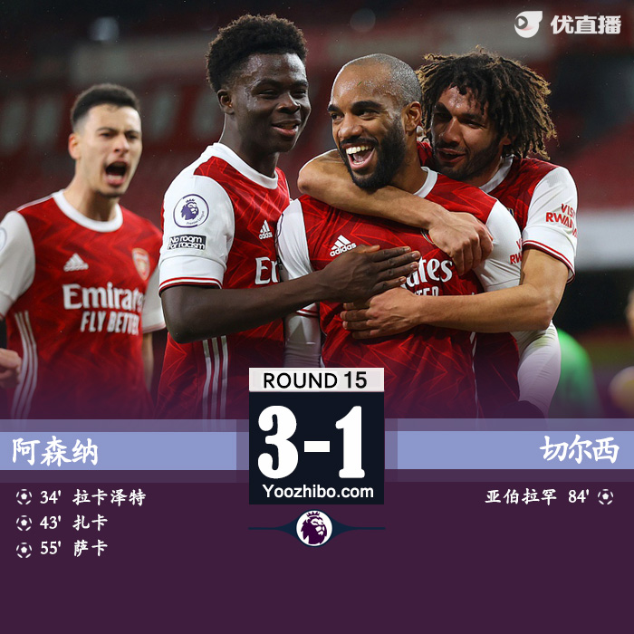 英超简报:阿森纳3-1切尔西 枪手“三卡”建功