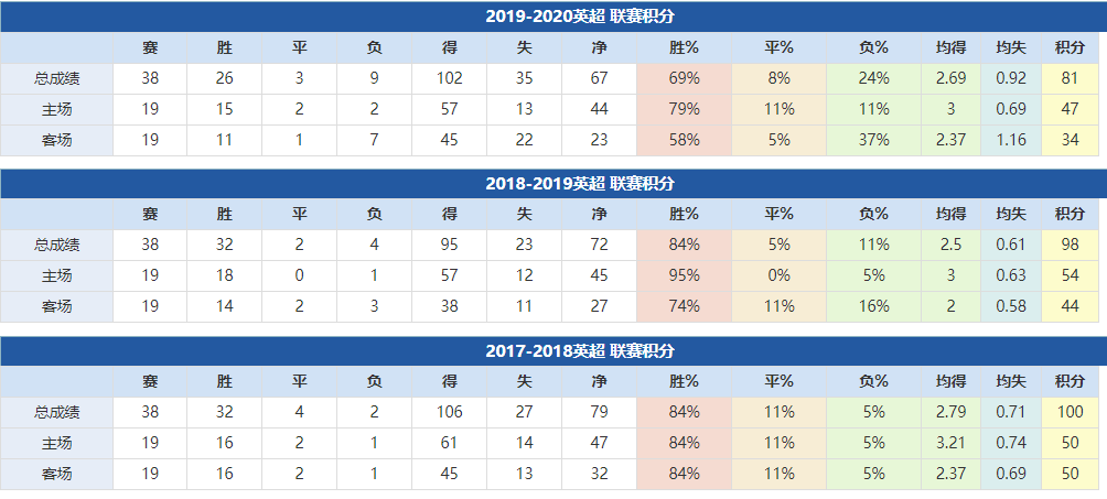 曼城近年成绩: