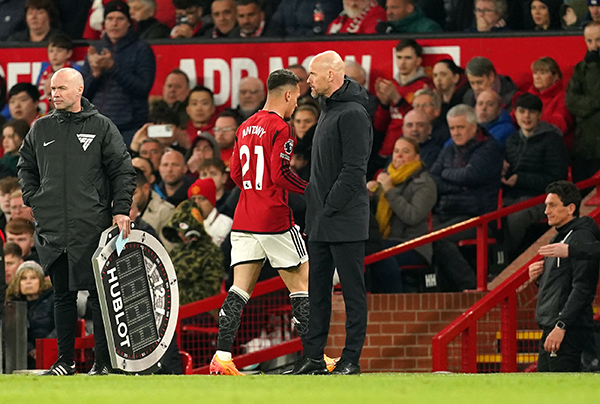 安东尼在比赛中不是毫无机会,他获得了一些空位,但根本没有利用好。恩师滕哈格也无法忍受其表现,56分钟就用另一位右边锋阿马德·迪亚洛将其换下。