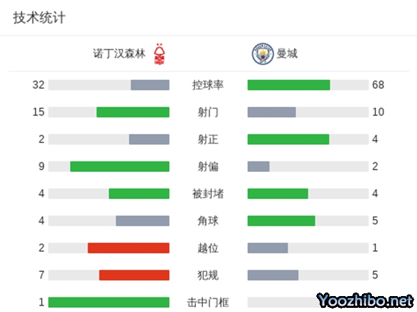 第32分钟,德布劳内角球传中,格瓦迪奥尔前点头球攻门得手,曼城客场1-0领先诺丁汉森林。
