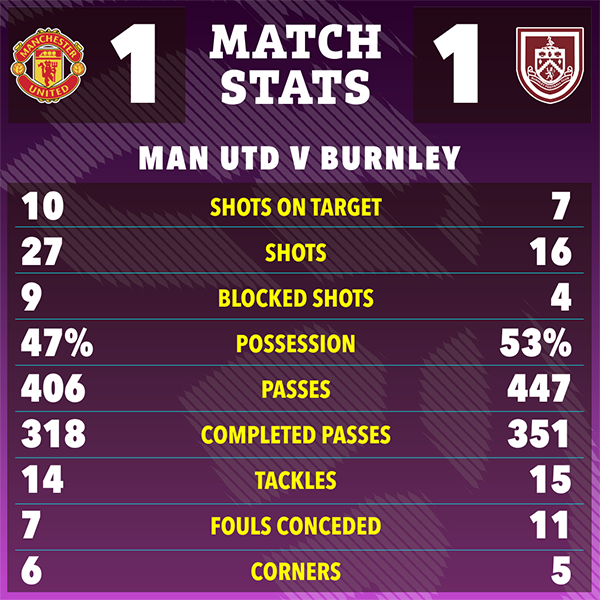 来源:直播车04-28 18:31直播车讯 曼联在英超主场1-1被排名倒数第二的伯恩利逼平,由于之后阿斯顿维拉2-2战平切尔西,只剩4轮而落后13分,红魔已经彻底失去进入联赛前四的理论机会。这场比赛,曼联遭遇了三四次疑似点球没判,但球队自己踢得也不够好,比赛结束后,老特拉福德响起嘘声。伯恩利同样为平局感到遗憾,他们的传球比曼联还多40次,16次射门创造多次威胁,但被奥纳纳神扑化解。