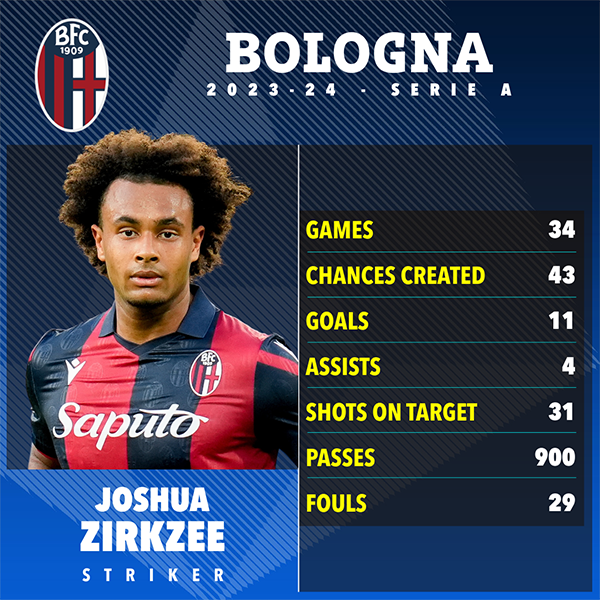 「竞技网」权威转会专家大卫·奥恩斯坦证实:「曼联正在探索博洛尼亚射手齐尔克泽,他们有浓厚的兴趣,并已经与球员的团队进行深入谈判。这名刚度过23岁生日不久的球员,在曼联的新前锋候选名单中,但还没有进行俱乐部与俱乐部之间的谈判。曼联考虑进行接洽,并且知晓其合同的4000万欧元解约条款。」