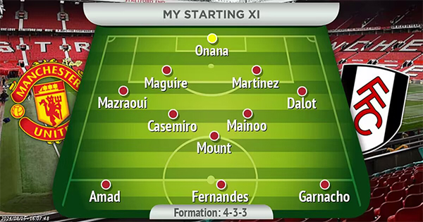 预测曼联vs富勒姆首发:奥纳纳/马兹拉维,马奎尔,利马,达洛/卡塞米罗,梅诺/迪亚洛,芒特,加纳乔/B费。