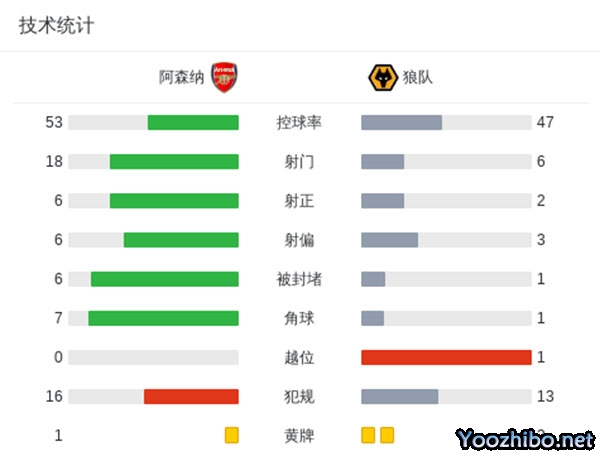 第24分钟,萨卡前场右侧45度角送出传中,哈弗茨禁区中路跟进头球破门,阿森纳1-0狼队。