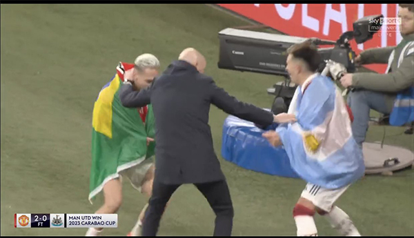 首轮结束后,滕哈格在场上与4000万欧元边锋迪亚洛勾肩搭背,在安东尼眼中恐怕不会是美丽的风景。过去曾与巴西边锋一起跳舞的荷兰籍主帅,现在已经有了「新宠」。