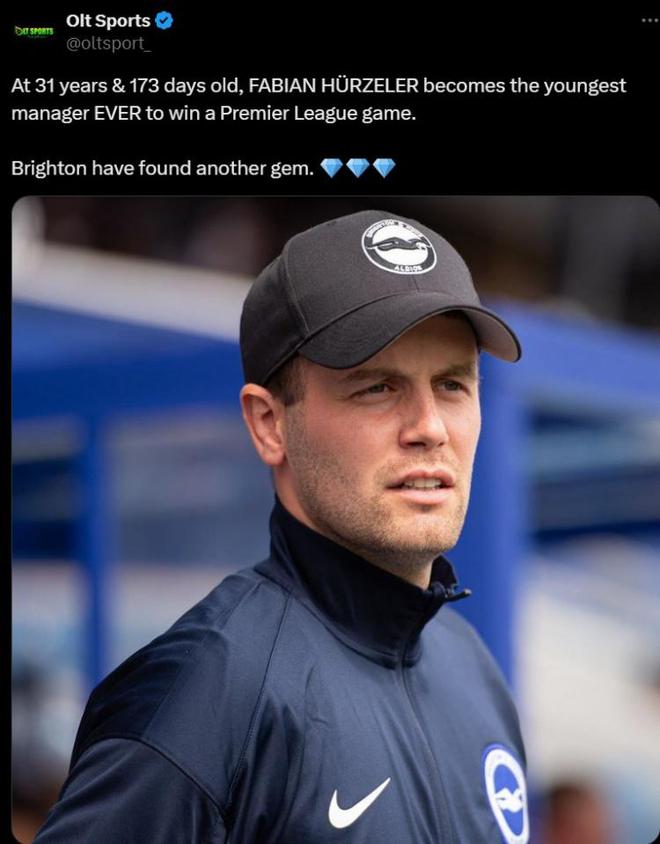 赫尔泽勒成英超首位 92 年后出生主帅,率布莱顿征战首轮