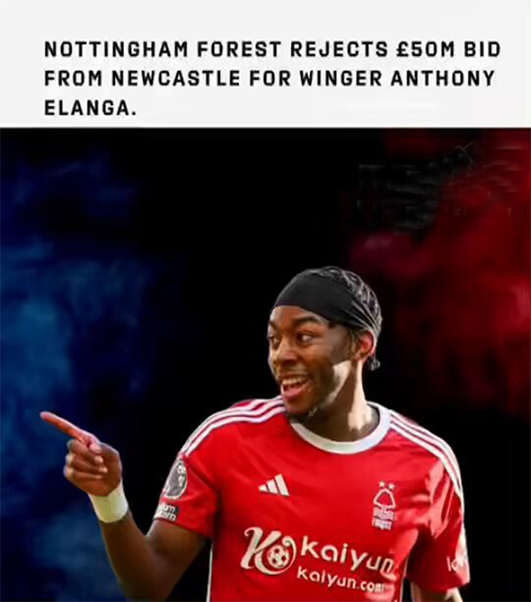但纽卡的半亿报价依然遭到了诺丁汉森林的拒绝,这是因为「喜鹊」出手的时间太迟,森林无法引进合适的替代者。诺丁汉森林不愿出售埃兰加可以理解,因为如果卖人后降级,他们的损失将会比5000万英镑更多!埃兰加和拉什福德一样,都是速度型球员,当年他们被认为是全队跑得最快的两人。