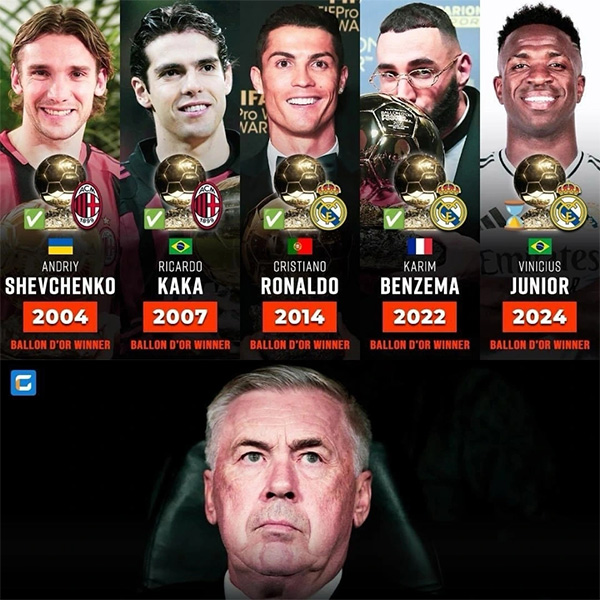 来源:直播车09-28 13:51直播车讯 若维尼修斯获金球,将是第5位安切洛蒂执教下金球得主