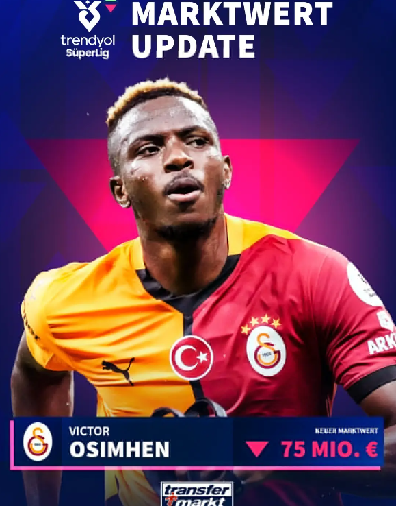 “亿欧先生” 风光不再?奥斯梅恩转投土超后身价暴跌 2500 万欧,头部球员格局生变