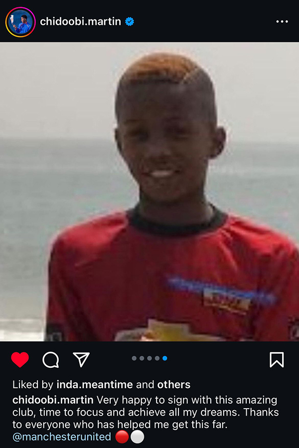 然而,在合同到期后,奥比与阿森纳的续约谈判没有达成一致,曼联把握住了机会,将他招入麾下。其经纪人公司与萨卡和桑乔相同,下个月年满17岁时,他还将与曼联签下第一份职业合同。奥比在社媒上发布了自己小时候身穿曼联训练服的照片,并且表示:「很高兴与这家令人惊叹的俱乐部签约,是时候专注于实现我的所有梦想了。感谢所有帮助我走到这一步的人。」
