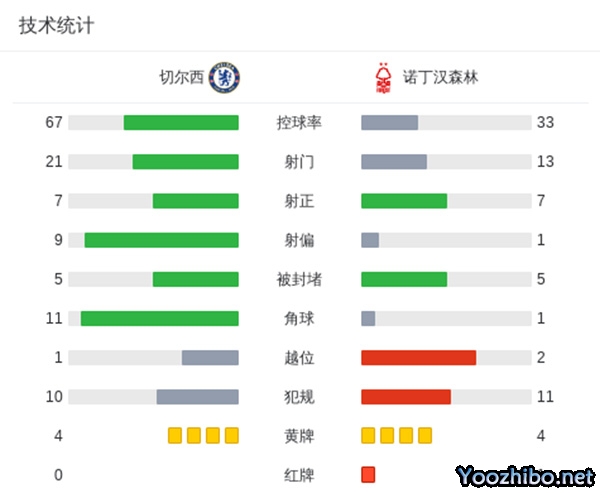 切尔西1-1森林终结联赛三连胜 帕尔默送助攻沃德-普劳斯染红