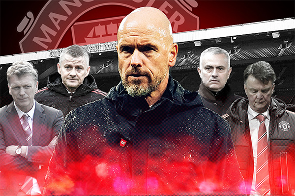 滕哈格执教曼联之后,球队的场均进球数是弗爵退休后最差的,场均1.45球。这不仅远远落后于老爵爷的2.01球,而且比起莫耶斯(1.65球)和穆里尼奥(1.62球),也有显著的差距。