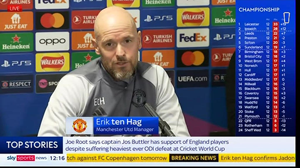 众所周知,桑乔因为与滕哈格不和,已经被下放青年队一个多月,并且拒绝道歉。因此,当曼联主帅提及桑乔复出时,英媒迫不及待想要发布这个大新闻。包括天空体育在内的英媒,都立即宣布桑乔有望在欧冠登场。